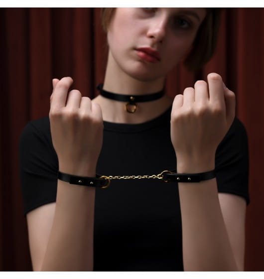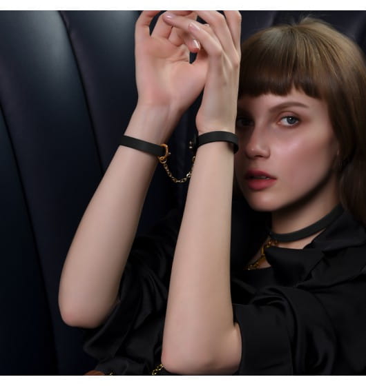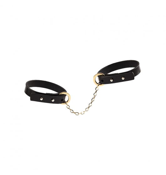 Te delikatne kajdanki do doskonały dodatek do sypialni! Wykonane z najwyższej jakości włoskiej skóry zachwycają pięknym wykonaniem i dbałością o detale. Połączenie czarnej skóry ze złotymi elementami nadaje całości luksusowy wygląd. Kajdanki są regulowane i doskonale będą pasować na każdy nadgarstek.