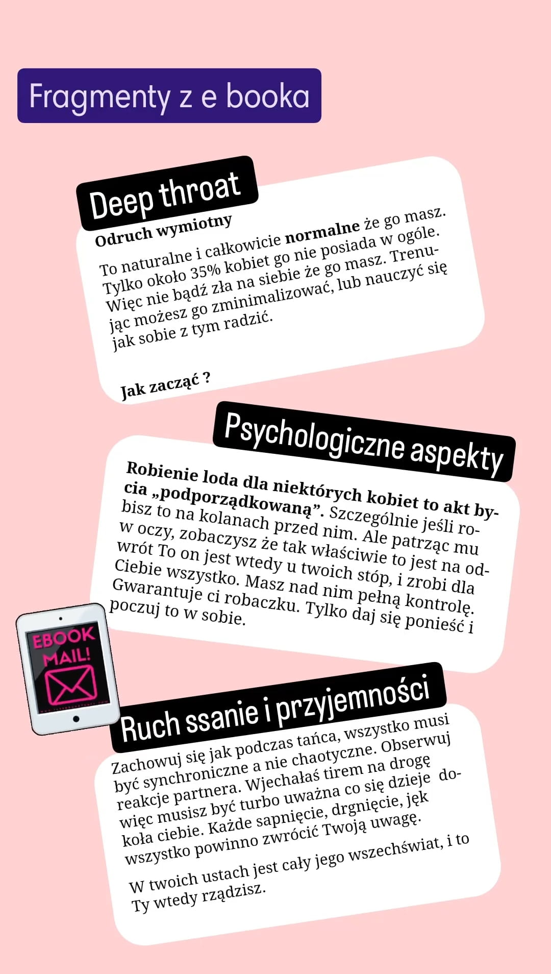 Nasz autorski Ebook to nie tylko inspiracja dla Ciebie jak zrobić dobrze loda, ale także edukacja w temacie jego emocji i psychologii.