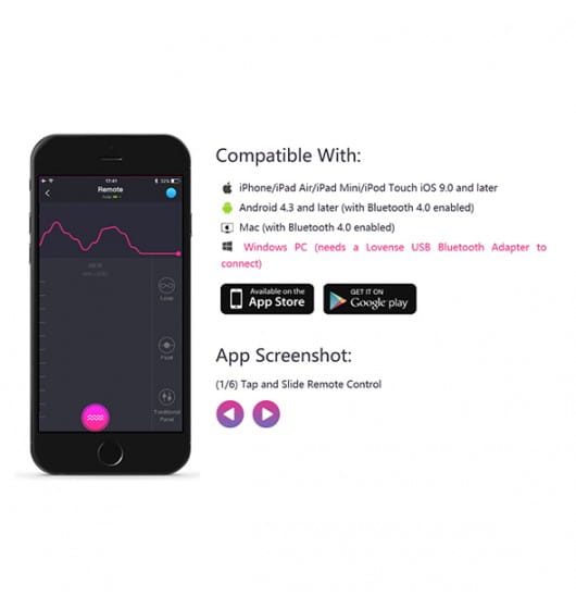 Pobierzcie aplikację Lovense, by móc sterować zdalnie jajeczkiem. Umożliwia ona indywidualne tworzenie programów wibracji, bądź wibracje w rytm ulubionej muzyki! Posiada także opcję „pobudki”, zaczyna wibrować w wybranej przez Was godzinie. Może być ono sterowane zarówno z krótkiego jak i z długiego dystansu. Jest to gadżet idealny dla par żyjących na odległość oraz dla osób wyjeżdżających często w delegacje. Dzięki tej innowacyjnej technologii możliwe jest sterowanie nim nawet z drugiej półkuli ziemskiej! Ponadto nowsza wersja zapewnia lepsze połączenie. Częste rozłączanie zabawki już nie będzie problemem! Aplikacja ta jest kompatybilna z systemami operacyjnymi Android, Mac oraz Windows