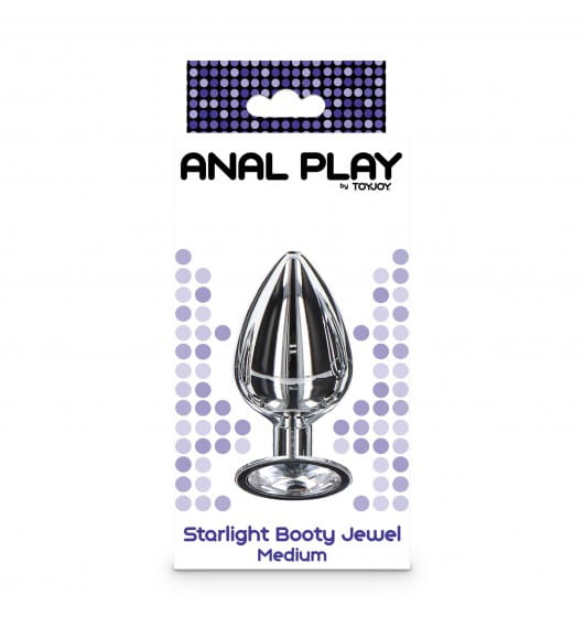 TOYJOY Starlight Booty Jewel Medium to wyjątkowy plug analny najwyższej jakości, który ożywi Twoją intymność imitacją kamienia szlachetnego umieszczoną w podstawie! Ten elegancki korek charakteryzuje się zwężającą się sylwetką oraz rozszerzoną podstawą, którą zdobi olśniewający akcent w postaci kamienia szlachetnego na końcu. Wykonany z wysokogatunkowego aluminium, Starlight Booty Jewel jest gładki w dotyku oraz całkowicie bezpieczny dla ciała. Jest to absolutny must-have z kolekcji Anal Play od TOYJOY. To idealny unisexowa zatyczka, która doda blasku i luksusu Twoim analnym przygodom.