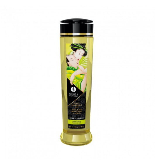 Olejek Irresistible jest przeznaczony do masażu erotycznego. W jego skład wchodzą jedynie w 100% naturalne, zimno-tłoczone oleje. Odczuj przyjemny dotyk orientu na własnej skórze, dzięki olejkowi o zapachu azjatyckiej fuzji owocowej, który tworzy na skórze przyjemny poślizg, nie pozostawiając tłustego filmu.