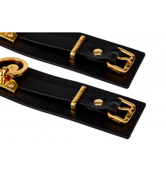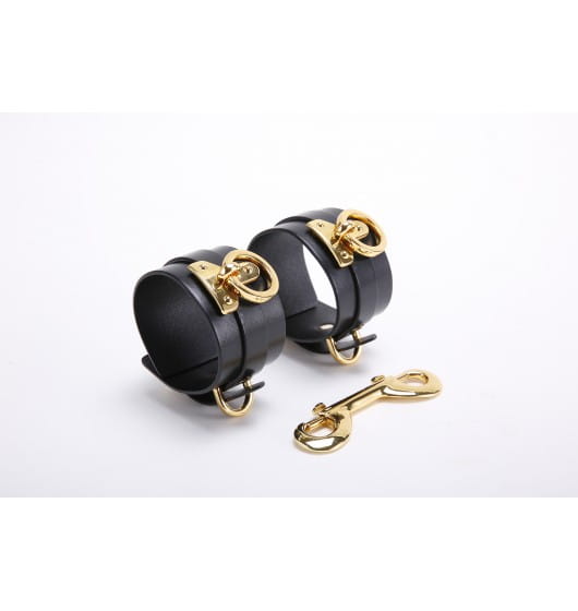 Piękne, skórzane kajdanki na ręce ze złotymi okuciami od UPKO.