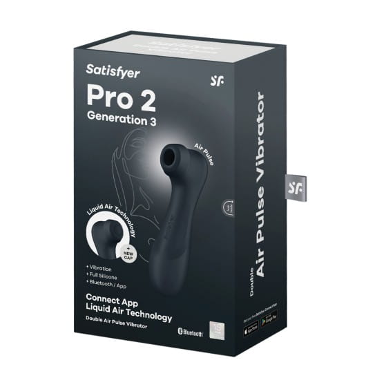 The Satisfyer Pro 2 Generation 3 Connect Appis the ultimate toy when it comes to clitoral stimulation. The successor to the popular Satisfyer Pro 2 is much more than a classic pressure wave vibrator with Air Pulse technology. Thanks to its two motors, you now also have the option of treating yourself to 12 vibration programs. The breathtaking revolution, however, is our innovative Liquid Air Technology: the extra cap with its thin and super-soft silicone membrane creates intense waves that mimic the sensual surge of pulsing water. The Pro 2 Generation 3 floods your body with these pleasure waves, creating a particularly natural feeling and enabling crystal-clear orgasms like you've never experienced before. You prefer to tease your clitoris with the familiar and completely non-contact Air Pulse technology? Since the Pro 2 Generation 3 Connect App comes with two attachments, you always have a choice. Immerse yourself in 11 pressure wave programs, which you can use solo or combine with the toy’s vibration modes. Thanks to the Satisfyer Connect app, you’ll enjoy even more variety in your solo sessions: create your own rhythms with the vibration designer, connect your Spotify account and come to the beat of your favorite song, or let your partner control your Satisfyer from anywhere in the world. The app is available for free for iOS and Android.
