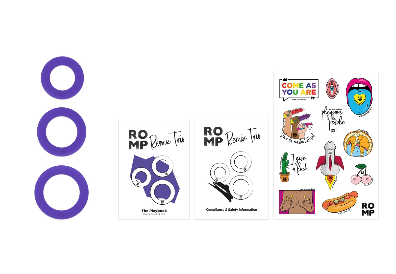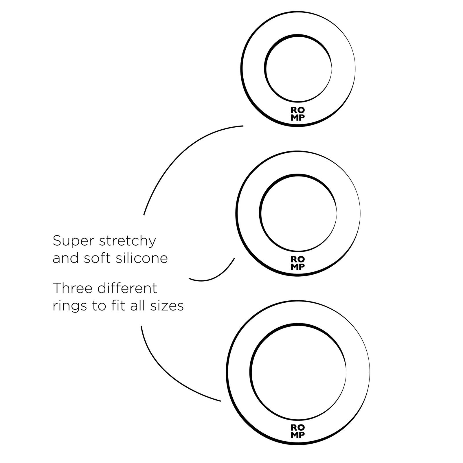 ROMP Remix Trio to komplet trzech elastycznych, niewibrujących pierścieni erekcyjnych, które wspierają wytrzymałość i pomagają utrzymać twardszy wzwód. Dzięki swojej rozciągliwości i trwałości pasują do różnych rozmiarów i kształtów.