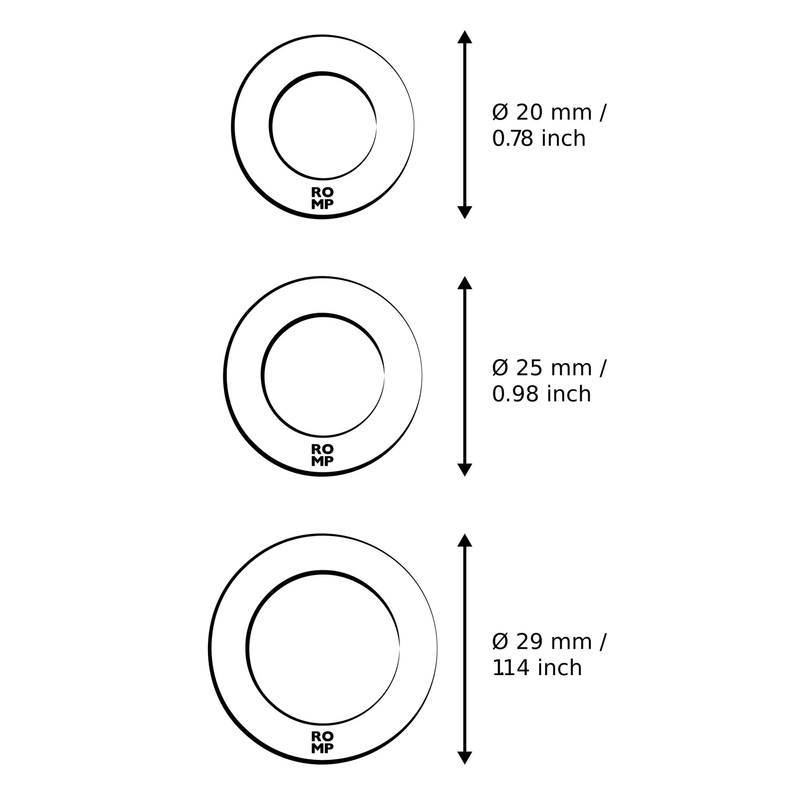 - Trzy rozmiary – średnice 20 mm, 25 mm i 29 mm dla różnych kombinacji
